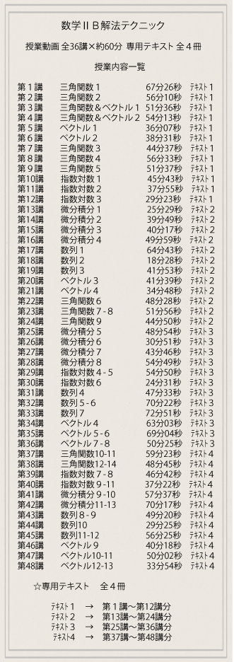 その答えが、「数学2B解法テクニック DVD講座 全36巻セット」なのです!
