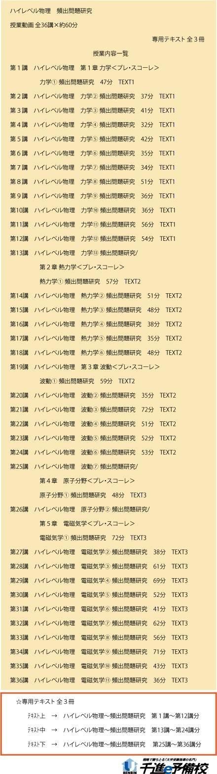 国公立二次「物理」対策、難関私立大学「物理」対策もバッチリ。