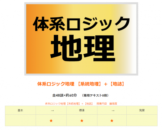 一通り受講し、十分に復習することで、高度な大学入試「地理」の知識が体系的に身につくのみならず、「勉強法」も自然に身につきます!