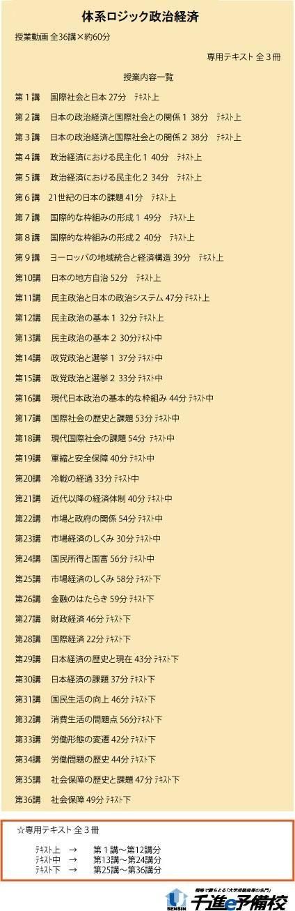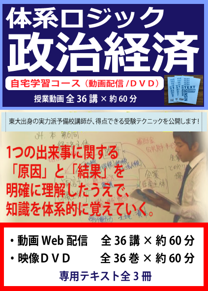 政治経済の過去の入試問題を解説していきながら、同時に政治経済の勉強をすすめていく上での勉強法も身につけてしまおう、という目的で行った授業がこの「センター政治経済対策 授業動画」です。